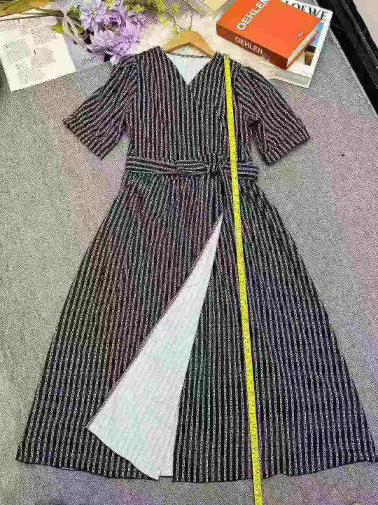 复古法式印花v领显瘦短袖开叉绑带气质长连衣裙,独立包装,码数1-4码,数量382条,1码裙长118厘米,分货加1,(货号0913#44)