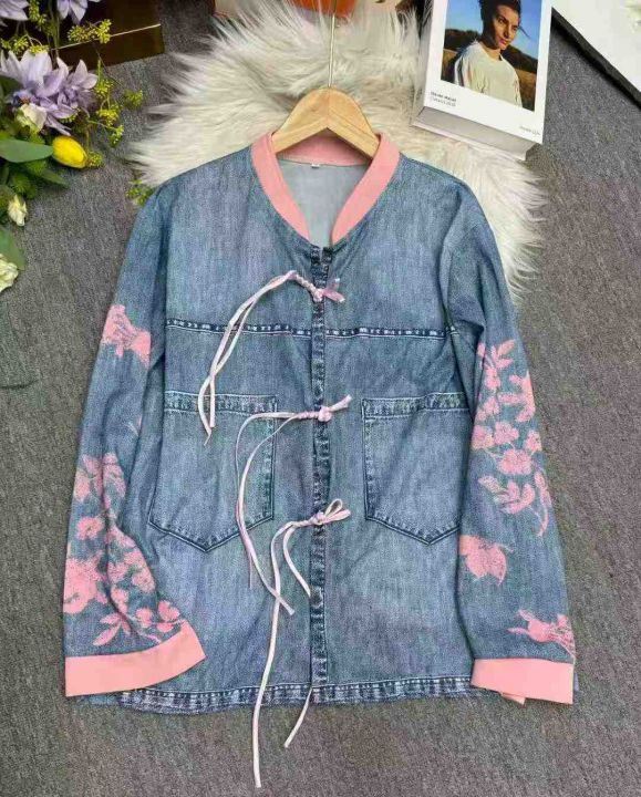 全清价7.8元新中式国风假牛仔宽松洋气百搭盘扣上衣,...