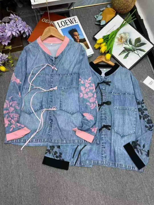新中式国风假牛仔宽松洋气百搭盘扣上衣,独立包装,颜色图一为主,码数,数量108件,不分货,(货号920#67)
