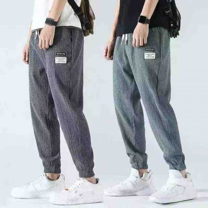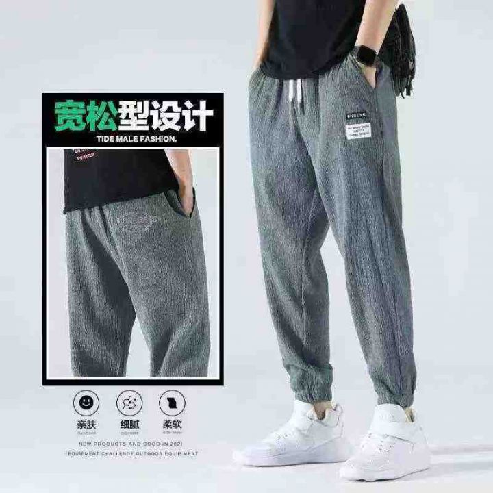 裤子男夏季薄款冰丝韩版潮流修身束脚运动裤裤,整款3色,独立包装,货品干净,M-5XL码,2415件,6.8清,分货加1