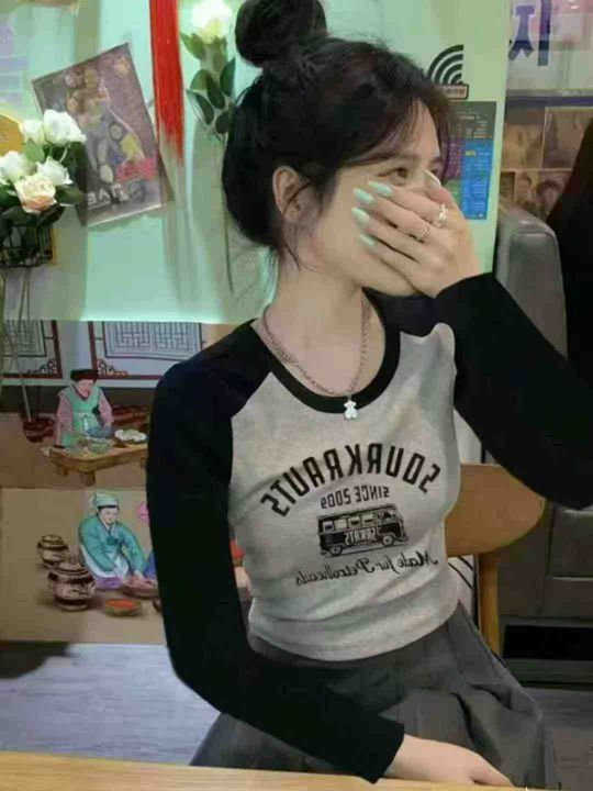 棉质欧货2025新款秋装美式插肩打底衫女内搭辣妹紧身上衣洋气长袖t恤,系列款多图,1-3码,400件左右,5.9清,分货加1