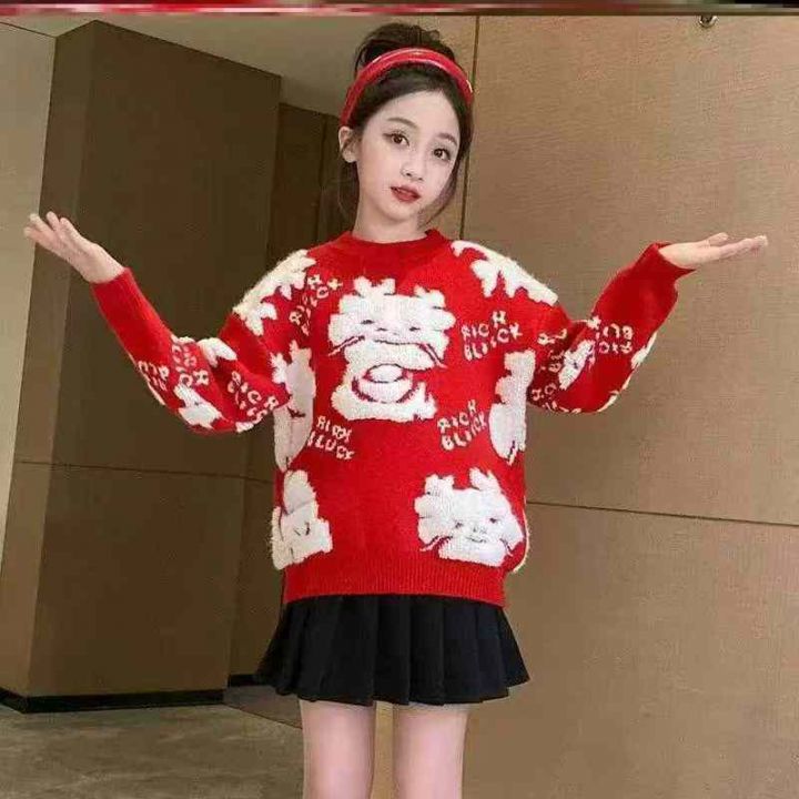 秋冬新款中大童男女童宽松提花包芯纱套头毛衣,独立包...