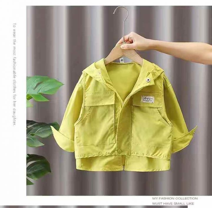 春秋男童工装款冲锋衣假两件外套, 两个颜色咖啡色☕...