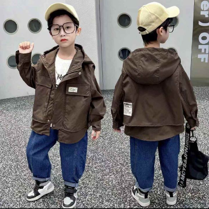 春秋男童工装款冲锋衣假两件外套, 两个颜色咖啡色☕️多 90-160码段 福利特价️ 16.9元 。 货号:8889