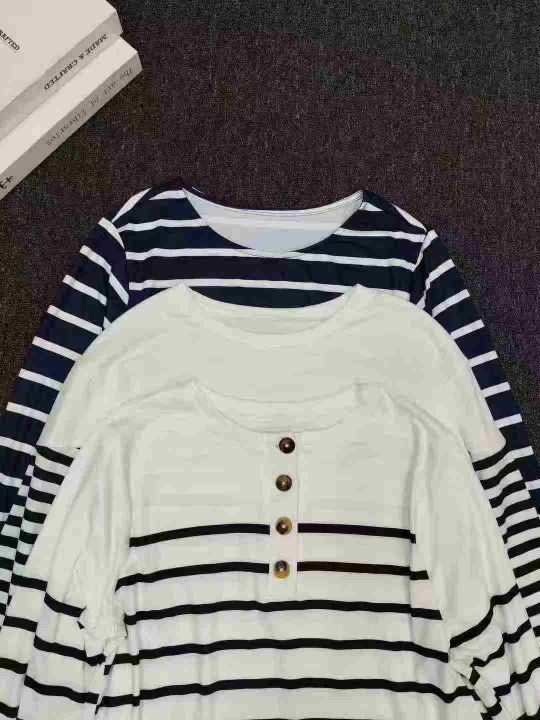法式气质条纹长袖男女T恤秋季,独立包装,S- X L,700...