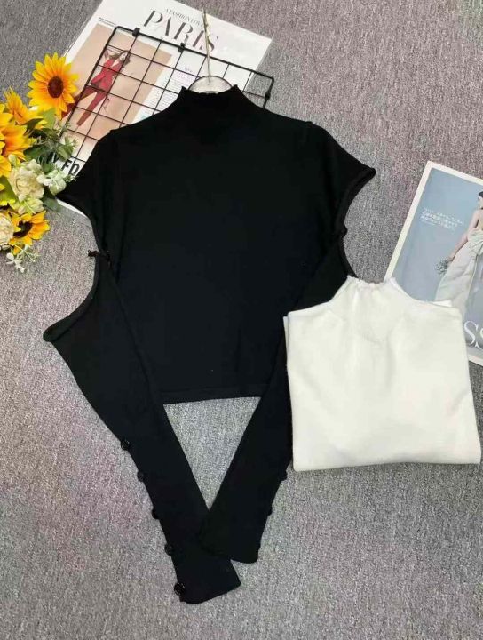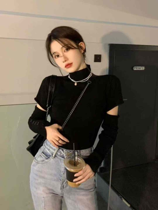 秋季新款辣妹纯色内搭设计感可拆卸半高领针织套头毛衣...