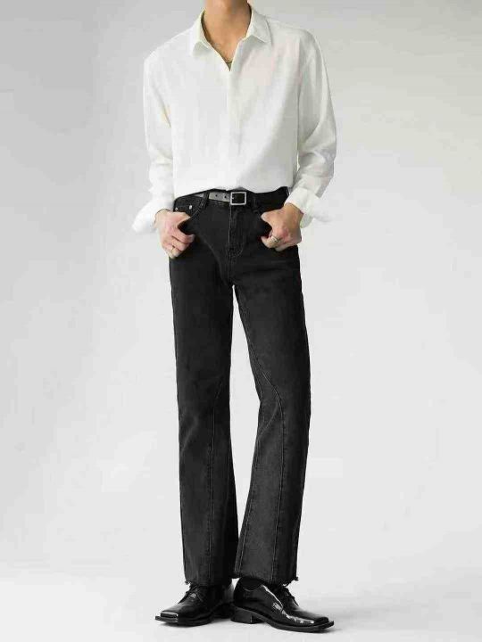 全清12.9,整款纯色水洗牛仔裤春秋款,微喇裤宽松潮男...