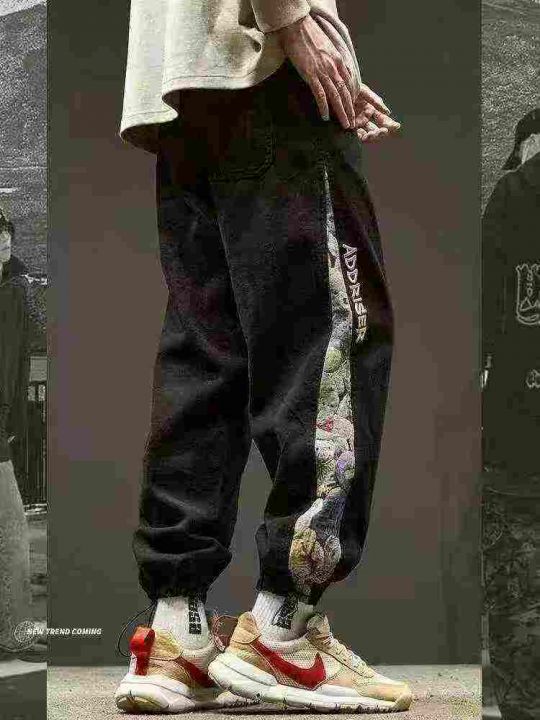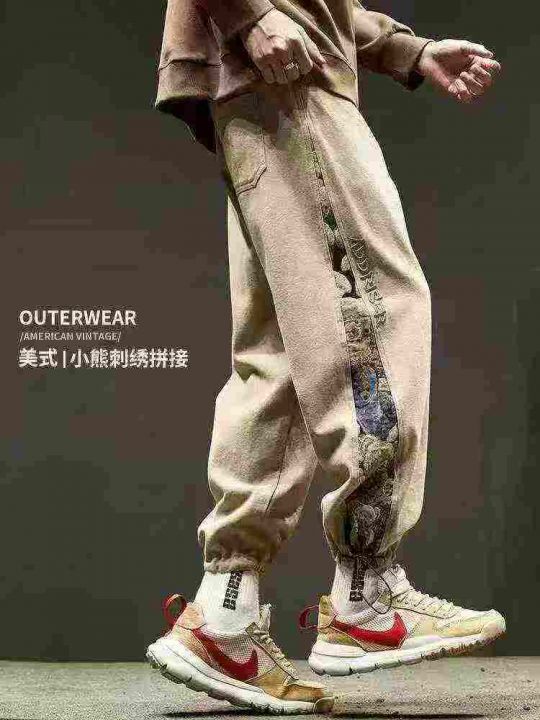 工装裤子男日系潮牌高街小熊刺绣设计感休闲裤直筒抽绳束脚裤春秋,802条,M-3XL,(920#69)