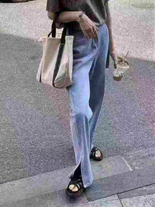 垂坠感女装mm宽松显瘦高腰破洞开叉牛仔裤,网络图仅供参考,码数:XS-XL,数量281条,独立包装