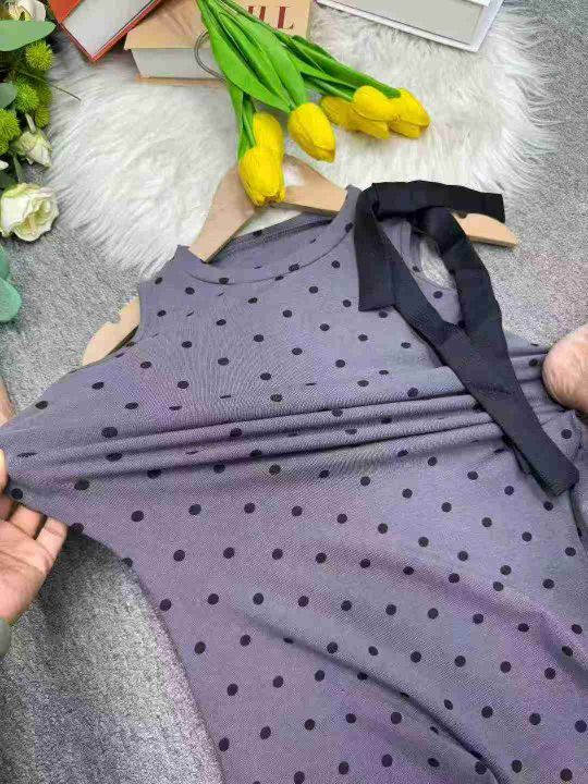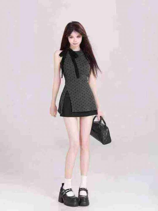 捡漏173件灰色波点时尚辣妹圆领无袖背心纯欲风蝴蝶结开叉不规则上衣,独立包装,码数1-4码,(货号920#68)