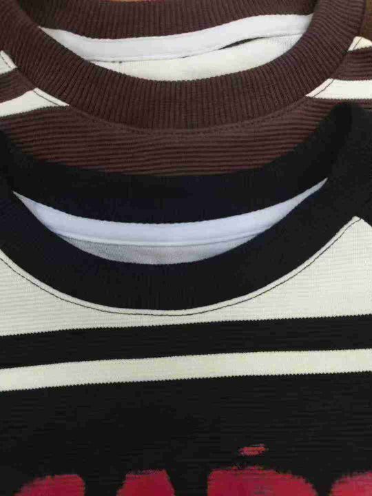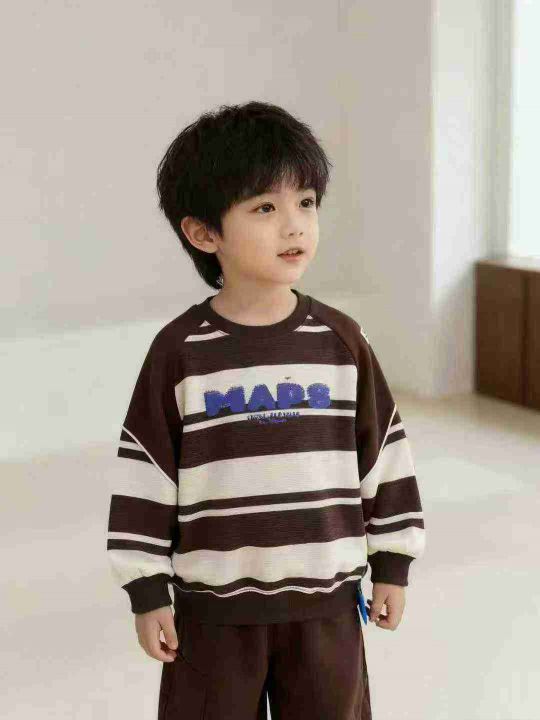 品牌高品质童装2025新款条纹卫衣 数量400件左右 尺码110--160 整款两个色 手袖带点小设计 独立包装带吊牌 货品干净整洁质佳!