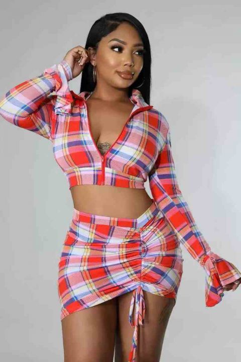 8.5清WY6870款,欧美时尚辣妹性感格子三件套,整款三色,数量:168套,码数...