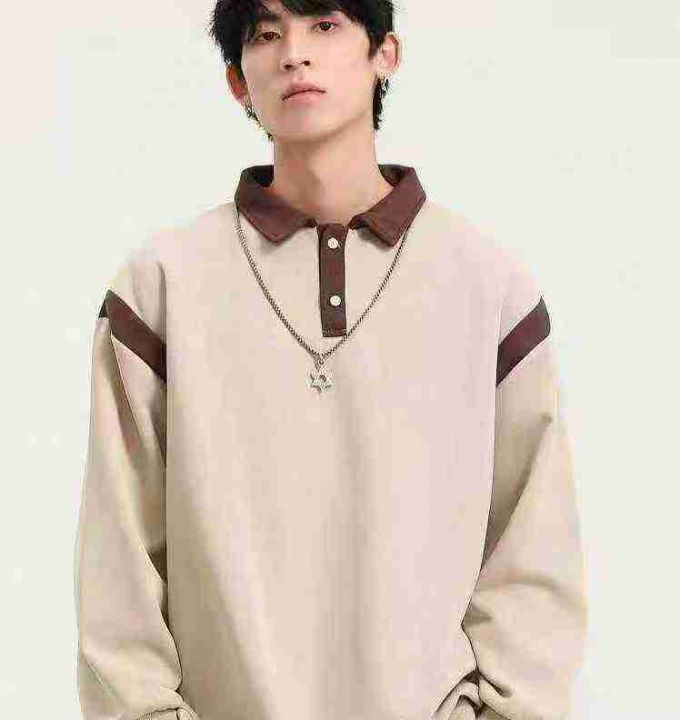 polo领大板落肩痞帅宽松棉质鱼鳞布卫衣,后领包边,290件,1-4码,版型宽松够大,独立包装,全清6.8元,分货+1