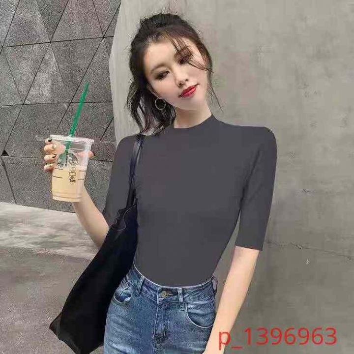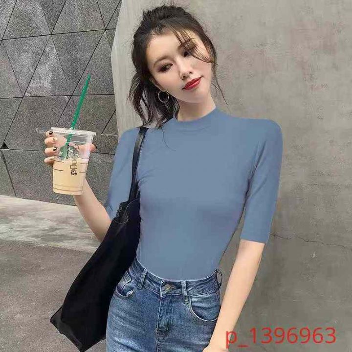 [月亮]:5.5清270件[月亮]:春夏立领半袖高弹T恤上衣[...