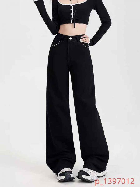 美式铆钉设计款高腰宽松显瘦牛仔裤,单款单色,独立包装,数量280条,XS-2XL码,福利价9.9秒杀,分货加1(1512#) _@_@