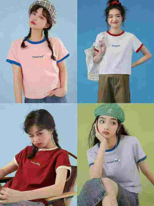 夏季新品100纯棉短袖果糖色密度220克t恤女学生宽松韩版靓妹女装短款上衣服,数量800件,码数s-2xl,后领包边,纯色30多件独立包装吊牌,可入超市商场地摊销售,全清7.8元,分货+0.5元