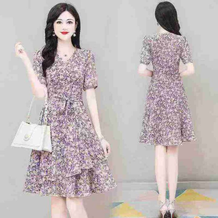 气质连衣裙女2025年新款夏季洋气碎花减龄时尚雪纺短款裙子300件,单款两色,尺码S~4XL.独立包装带吊牌,货品新净,全清福利价12.8元分货➕1