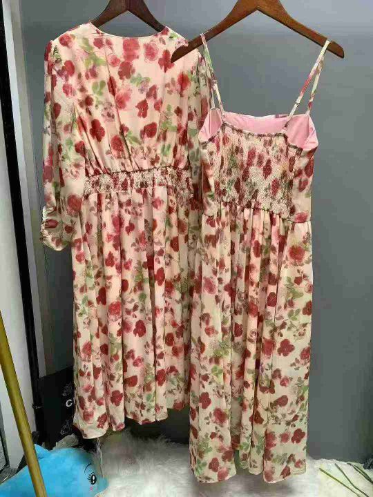 碎花大码女装连衣裙夏季2025新款法式高腰显瘦裙子290件,独立包装带吊牌,货品干净整洁,有吊带,有长袖,尺码S~4XL,全清福利价12.8元,分货➕1