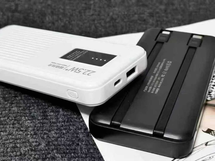 足容10000毫安充电宝,22.5W超级快充,黑色白色,带线