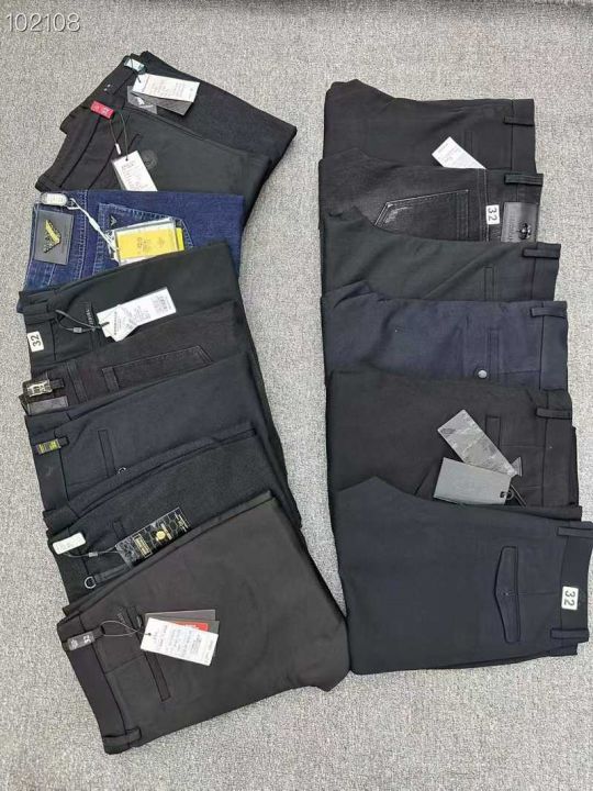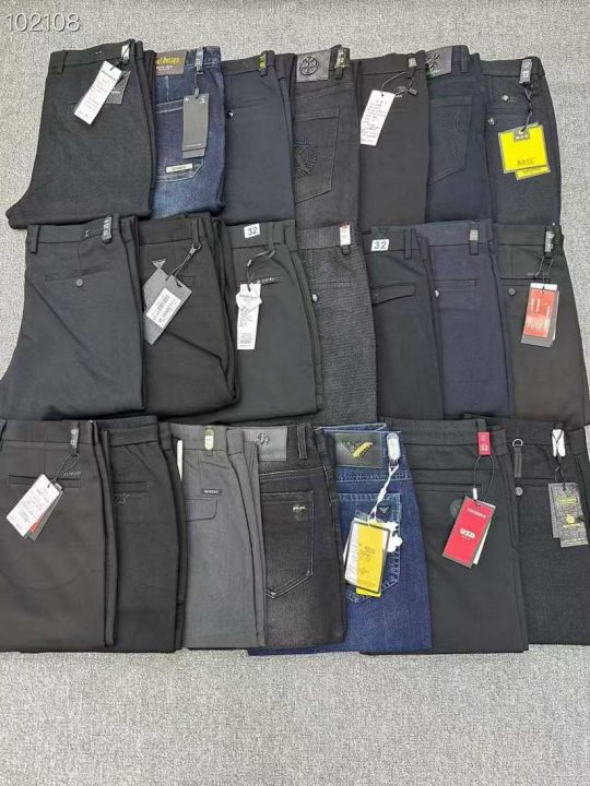 02组秋冬厚款商务休闲裤、有强者共舞、蓝旗盾、老人头、啄木鸟等大厂品牌混合打杂、有休闲裤、牛仔裤、少量大版裤和松紧带裤、高端品质面料新、条条精品无死款、一包200件和100件的都有、附有号码清单