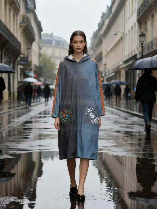 6.8清电商仓回收1003件仿牛仔复古小众慵懒风宽松胖MM连帽连衣裙,码数2-4-6...
