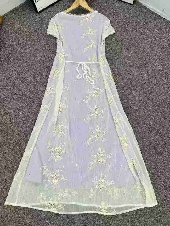 4600件高品质盛夏气质收腰显瘦修身长款连衣裙,工艺绣花,单款单色,独立包装,码数M-L。