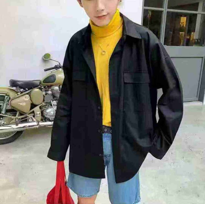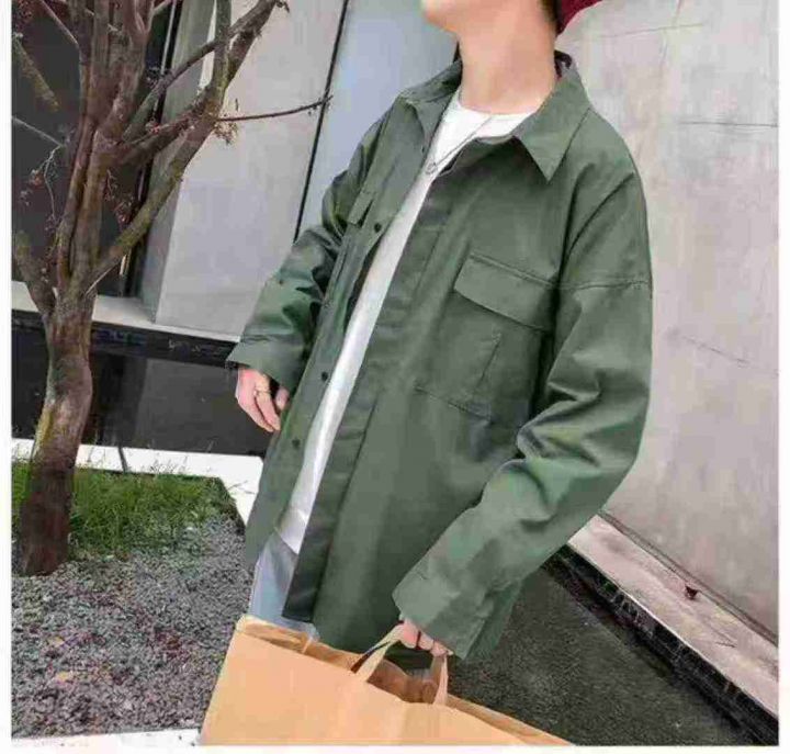 原宿风复古男士港风韩版长袖潮流休闲简约百搭宽松工装...