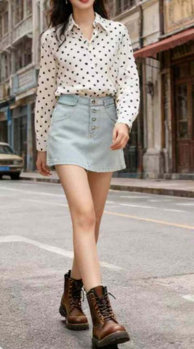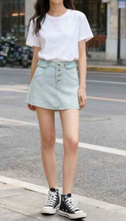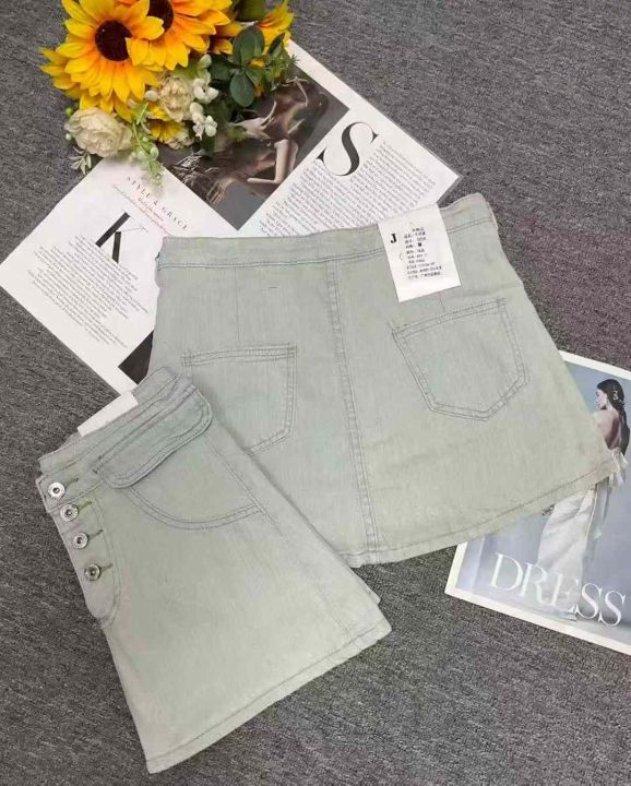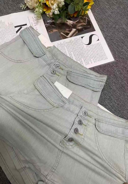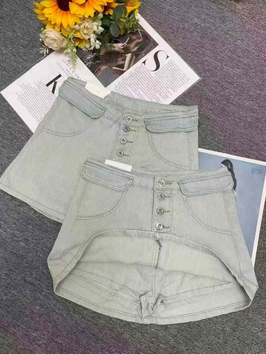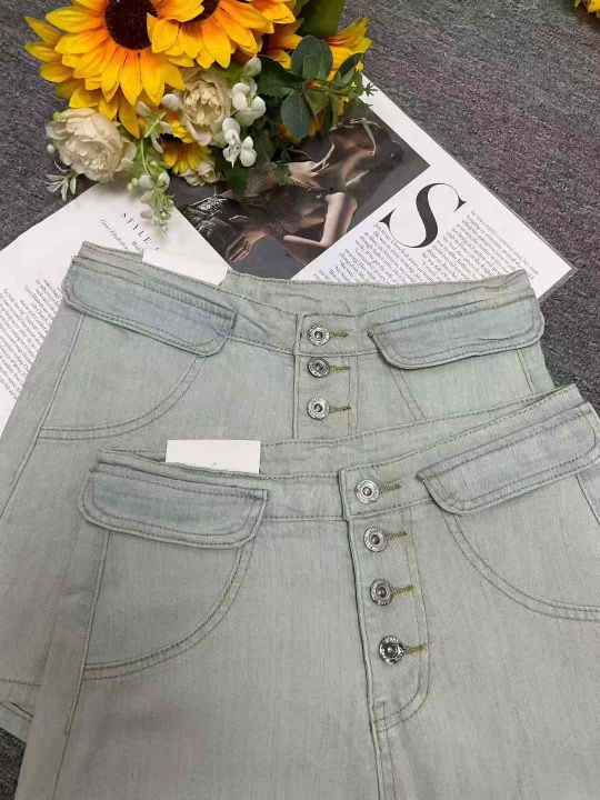 高弹力复古洗水棉牛仔半身裙裤,独立包带腰卡,码数M-...