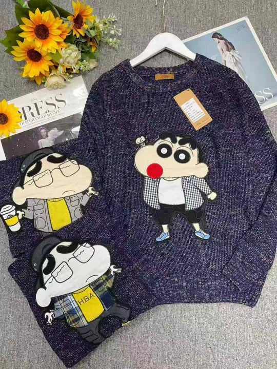 秋冬新款男女同款网红爆款卡通慵懒风蜡笔小新特种沙圆领套头毛衣,独立包装带吊牌,码数L--3XL码,450件,全清8.9元超低价秒杀!分货加一!