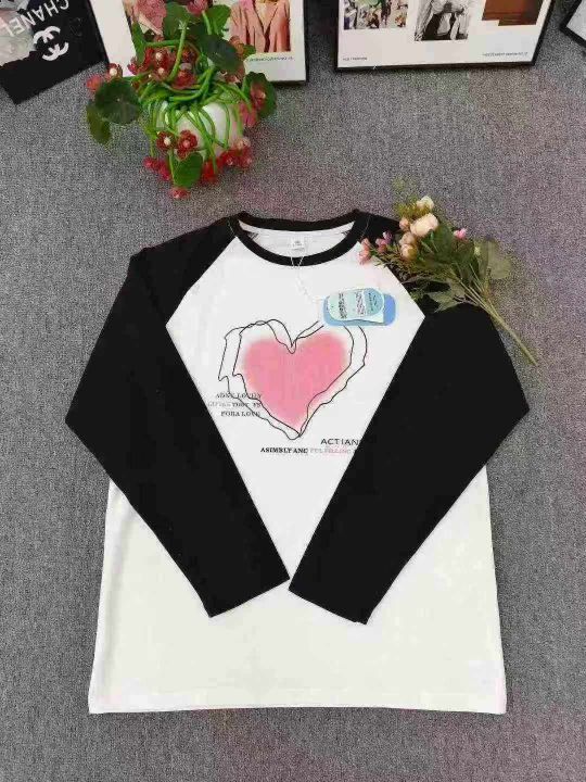 全清6.8分货➕1春秋撞色插肩心型印花白色长袖,数量...