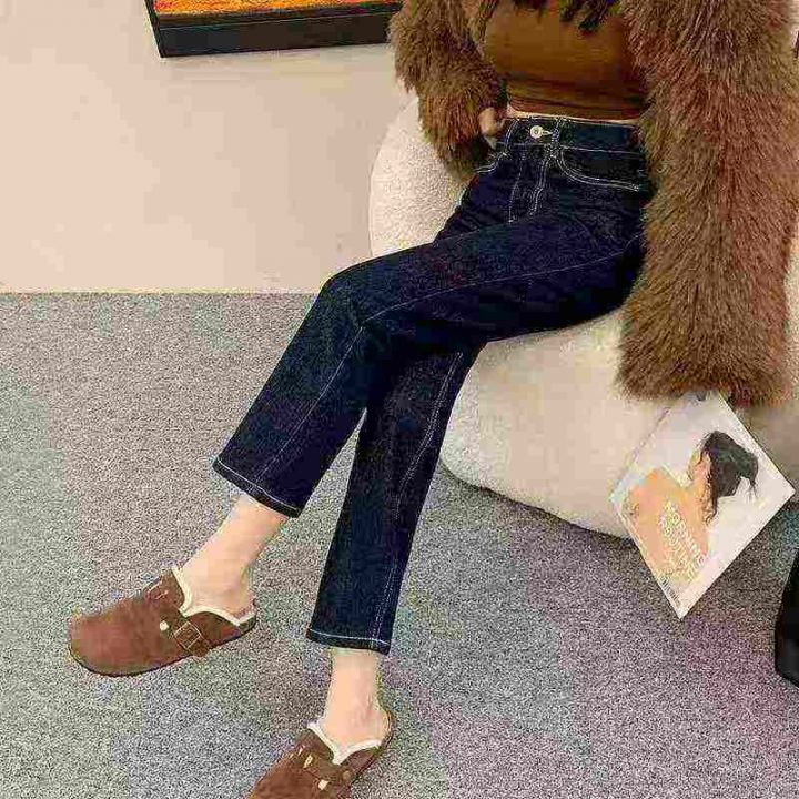 韩版百搭深蓝色宽松烟管牛仔裤,[爱心]40件左右,码数M-2XL,没有L码,穿80-140斤,万佳档口货,原包装️无瑕疵,[666]实体店品质