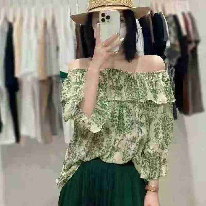 雪纺复古上衣321件7.8,一字领荷叶边,可多种穿法,面料柔软舒适,有内衬,...