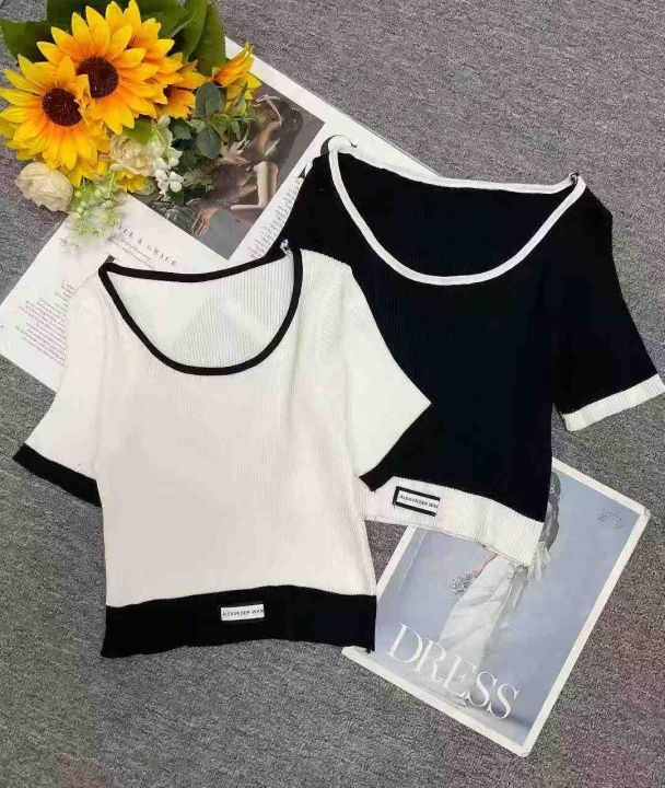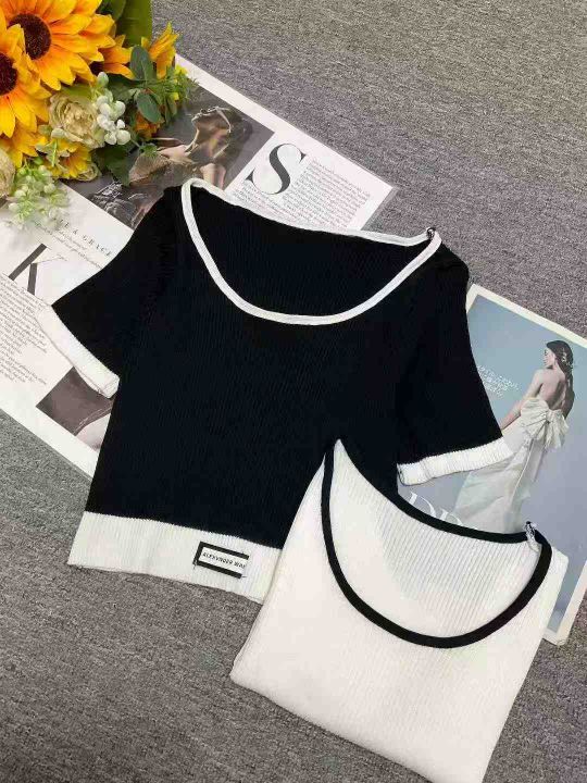 夏季新款法式甜辣风撞色港味复古针织短袖T桖,独立包装,均码面料柔软舒适弹力大,565件,全清5.9元超低价秒杀!分货加一!