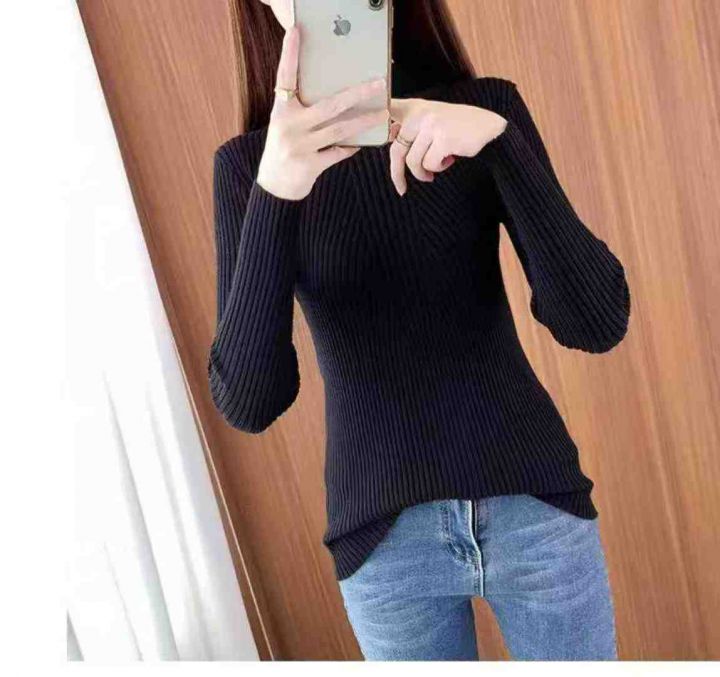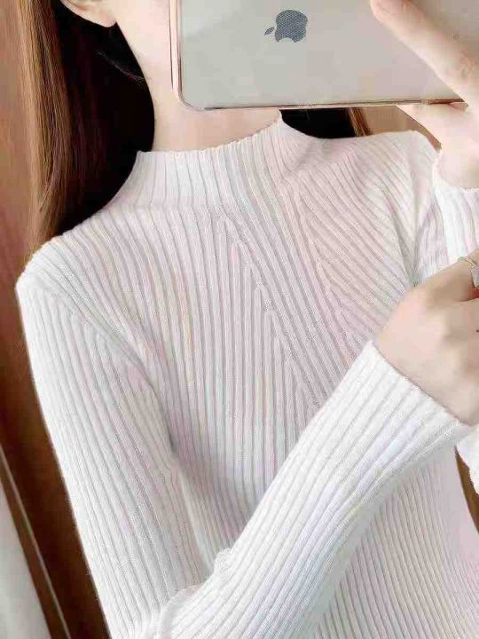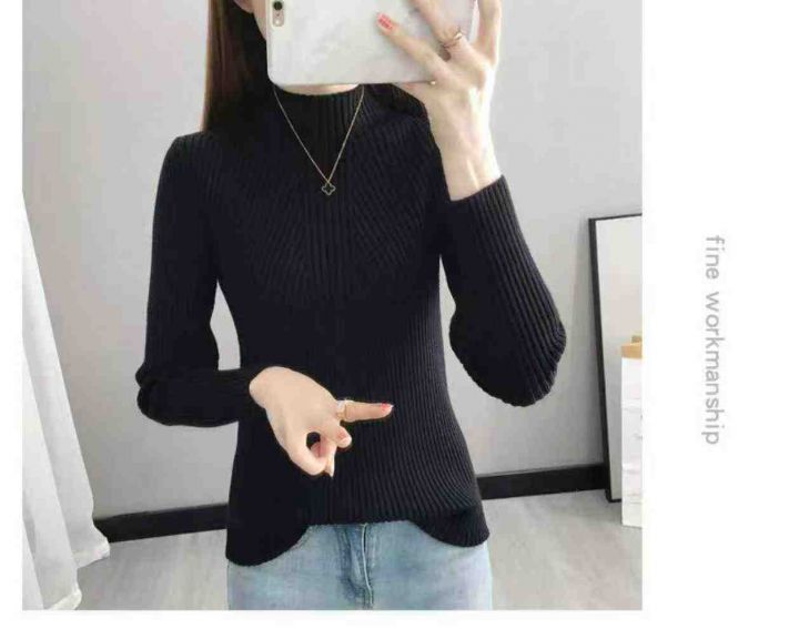 修身百搭半高领木耳边长袖打底衫针织衫,整款两色,手感柔软,有独立包装,...