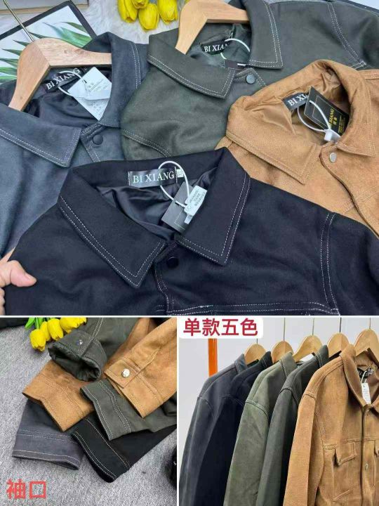 男士新款仿麂皮绒夹克潮流帅气休闲翻领工装外套上衣,独立包装原吊牌,整款五色,码数M-3XL,数量1600件,分货加1,货号0912#37