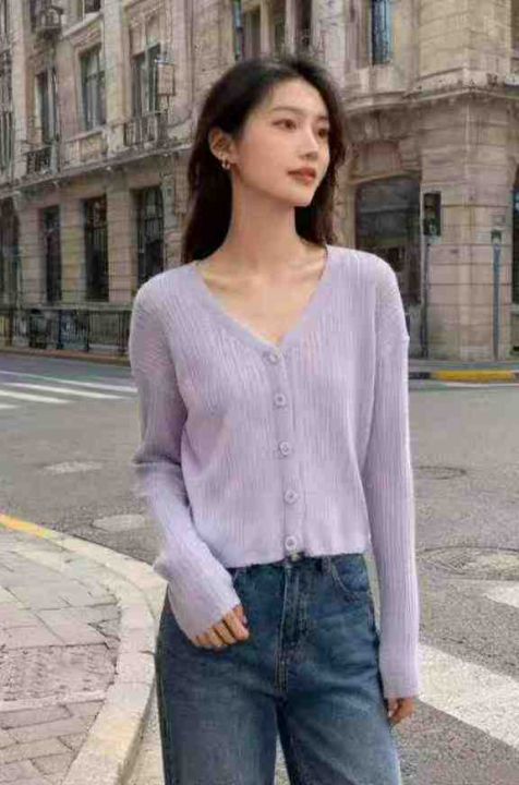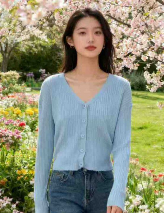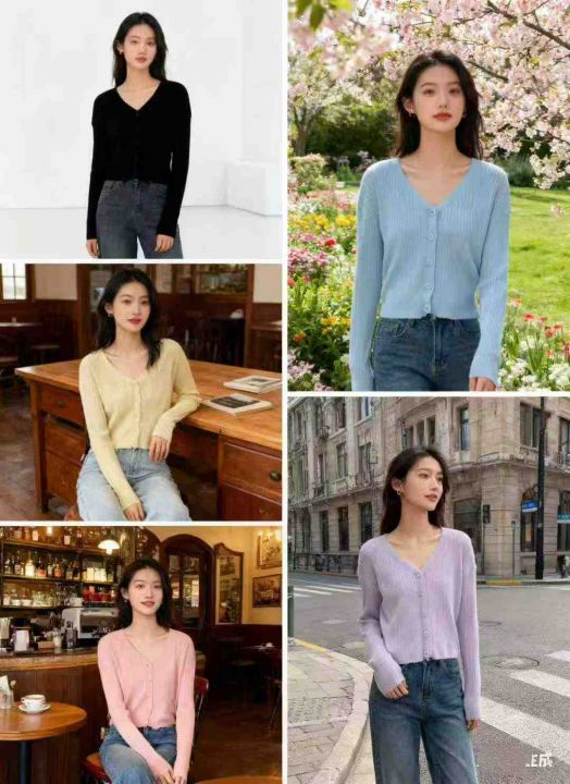 秋季新款净版简约V领温柔风针织毛衣开衫,独立包装,...