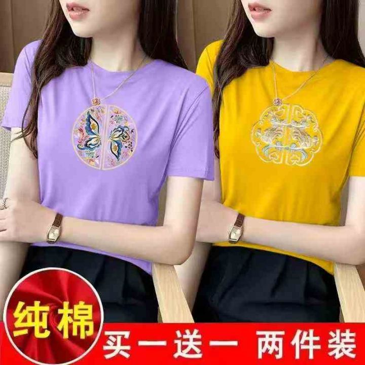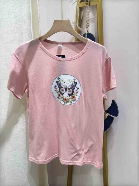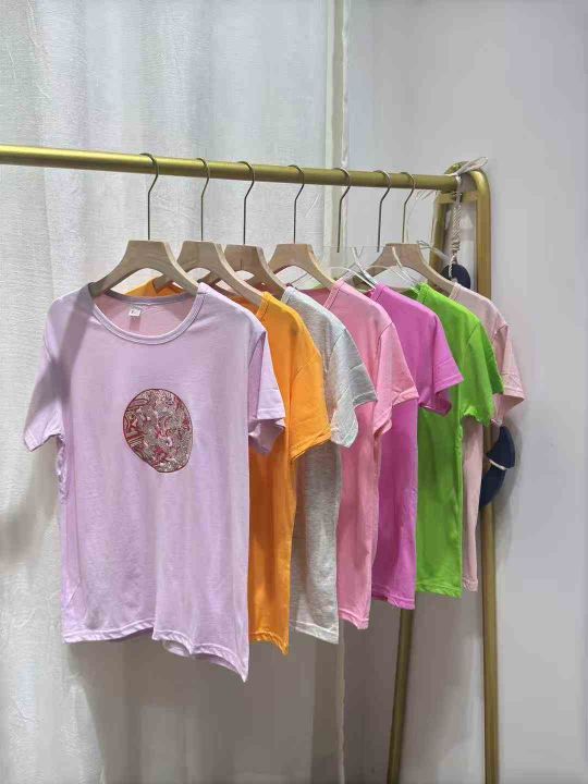 新款【中式国风】棉t短袖女短款T恤半袖时尚女衫款上衣体恤多色,数量1000左右,均码(105-125斤穿),独立包装吊牌,全清5.5元