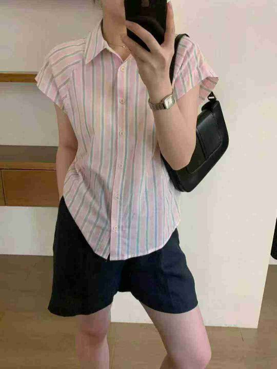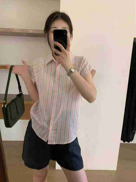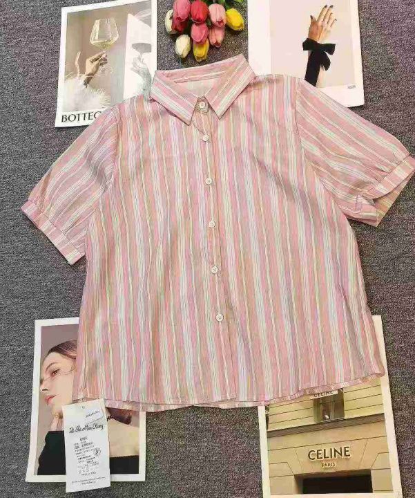 多巴胺粉色条纹温柔别致百搭衬衫,[爱心]110件左右,码数S-XL,穿80-140斤,万佳档口货,原包装️无瑕疵,[666]实体店品质,分货加一