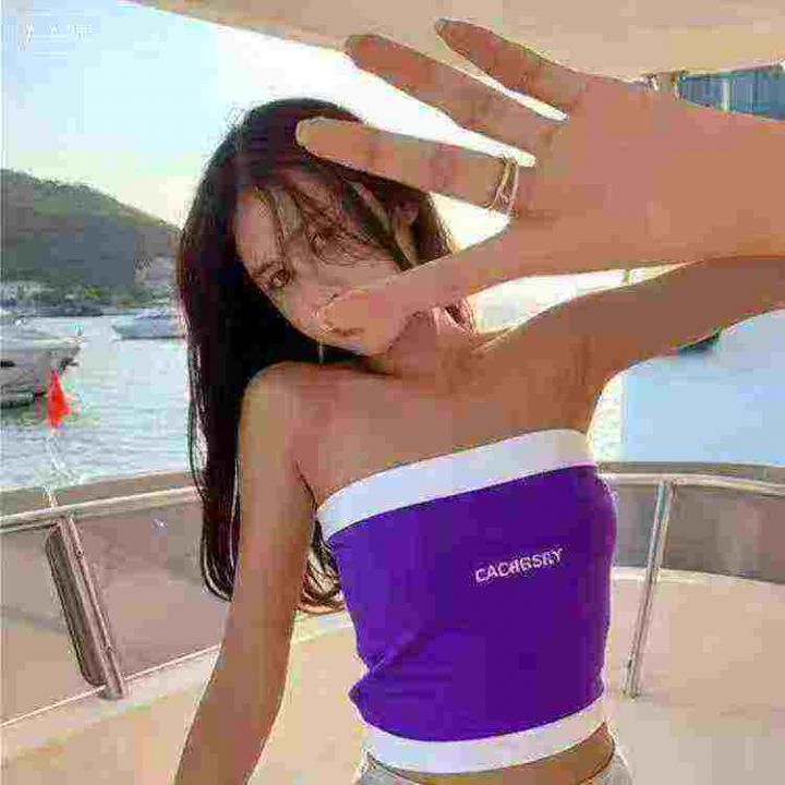 夏秋季新款性感辣妹纯欲风字母刺绣撞色针织抹胸背心,独立包装,单款多色,均码面料柔软舒适弹力大,2245件,全清1.99元超低价秒杀!分货加一!