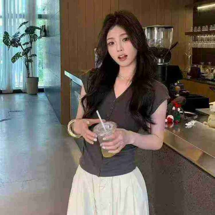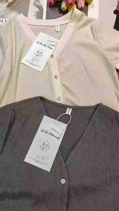 韩系小众V领褶皱显瘦开衫上衣,[爱心]245件左右,深灰色款为主,两个款,扣子有区别,码数S-2XL,穿80-140斤,万佳档口货,原包装️无瑕疵,[666]实体店品质,分货加一