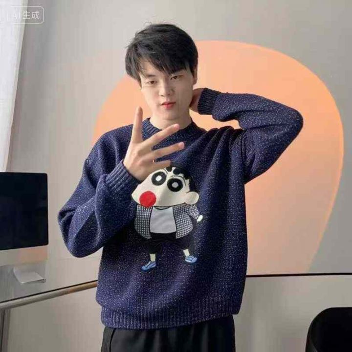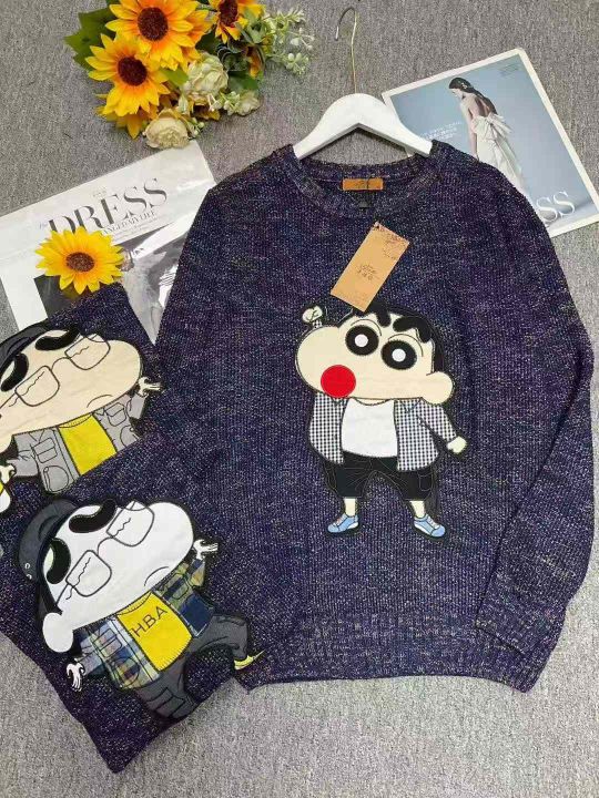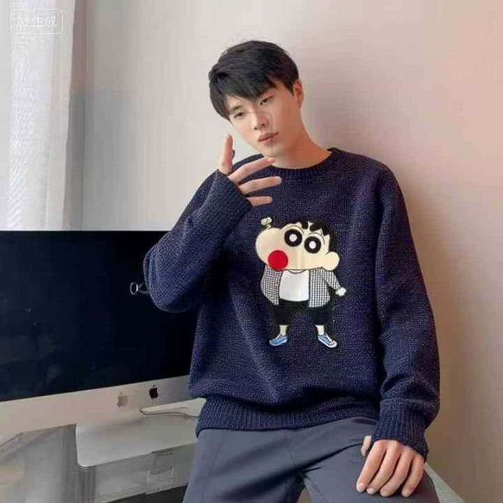 秋冬新款男女同款网红爆款卡通慵懒风蜡笔小新特种沙圆领套头毛衣,独立包装带吊牌,码数L--3XL码,450件,全清8.9元超低价秒杀!分货加一!
