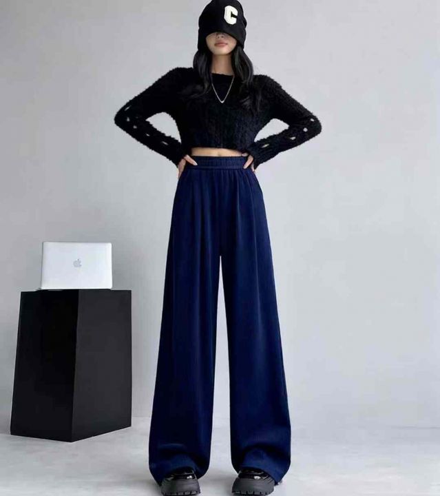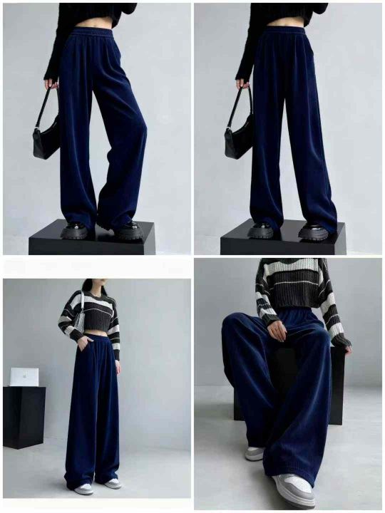秋冬新款大码女装雪尼尔松紧腰休闲裤,有长裤和9分款...