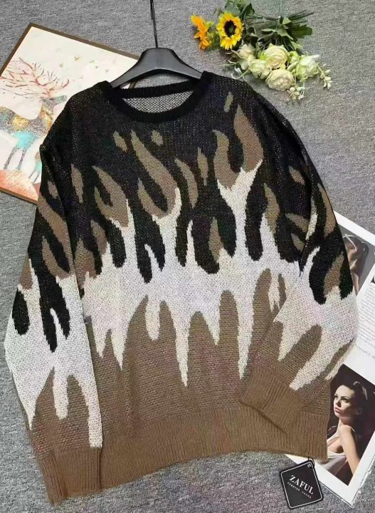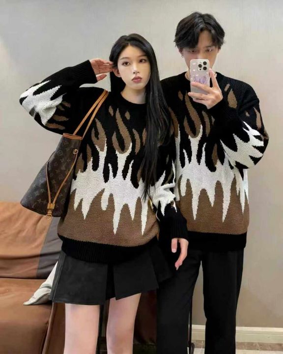 秋冬新款国潮牌原创撞色渐变火焰暗黑亚比风男女同款提花芝麻底圆领套头毛衣,独立包装带吊牌,码数S--L码,面料软糯厚实,宽松款,256件,全清6.9元超低价秒杀!模特上身效果可参考!
