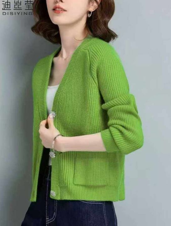 早秋新款V领宽松慵懒风针织毛衣开衫,独立包装,均码...