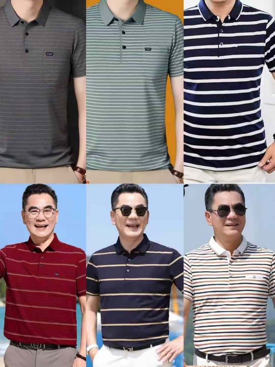☕️中老年爸爸条纹男装Polo翻领短袖T恤30000件全清7.8元 分货8.8元,一捆1...