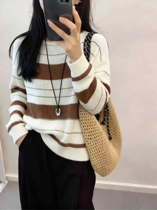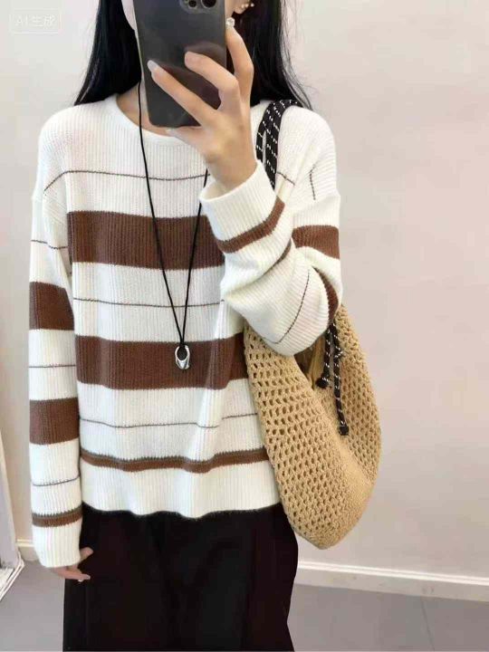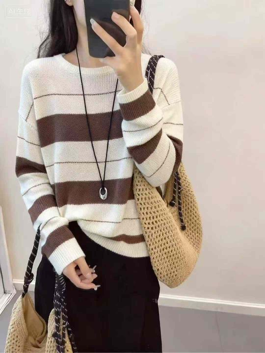 秋季新款大码宽松慵懒风圆领套头毛衣,独立包装,码数...