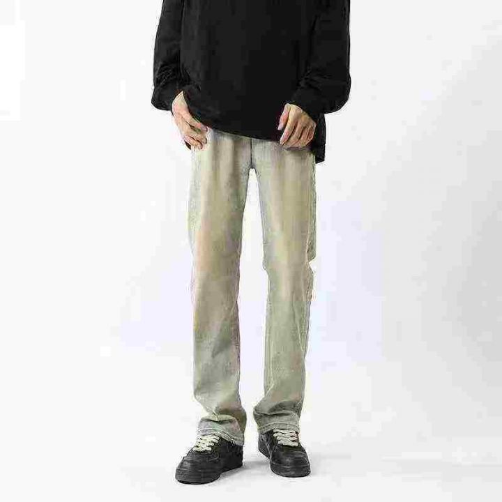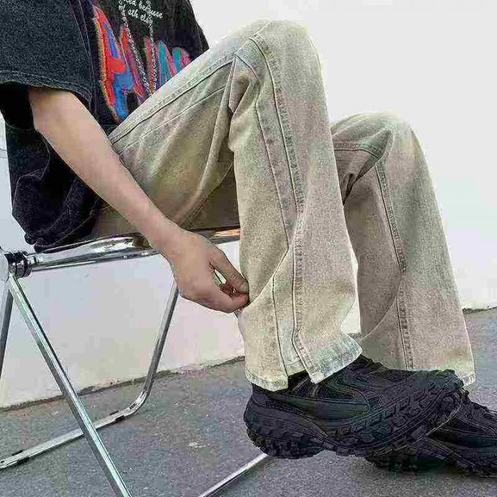 美式高街vibe裤子复古黄泥牛仔裤男款春秋季宽松直筒垂...