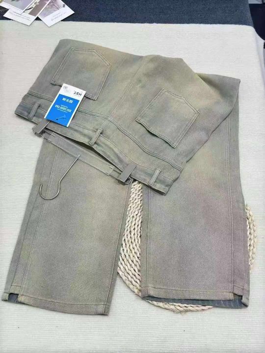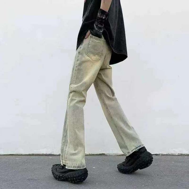 美式高街vibe裤子复古黄泥牛仔裤男款春秋季宽松直筒垂感微喇叭裤,数量231件,码数2xl-3xl,独立包装吊牌,全清10.8元