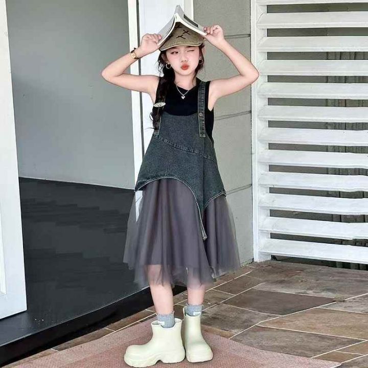 女童 春秋 牛仔拼接背带裙 90-130 散码 纱质柔软背带110码多些