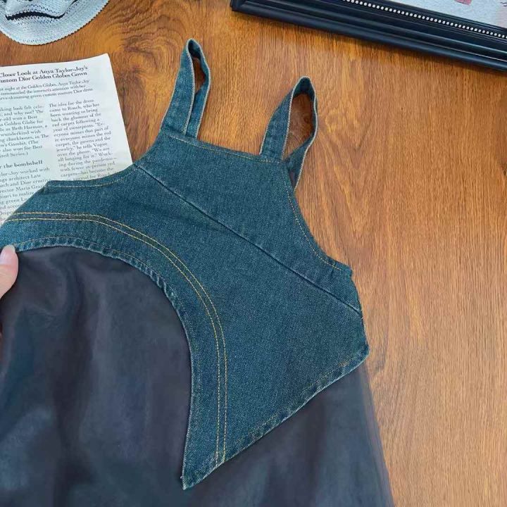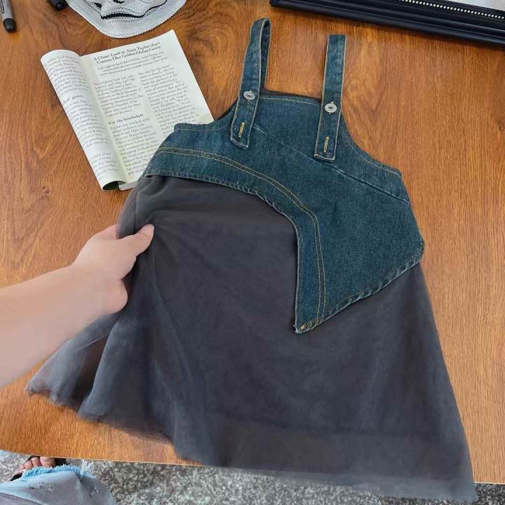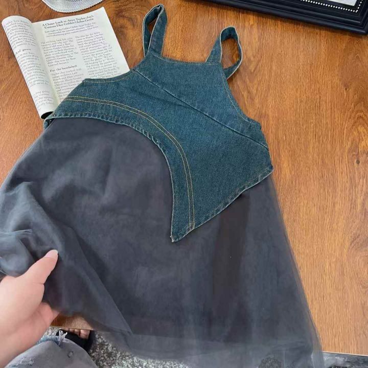 女童 春秋 牛仔拼接背带裙 90-130 散码 纱质柔软背...